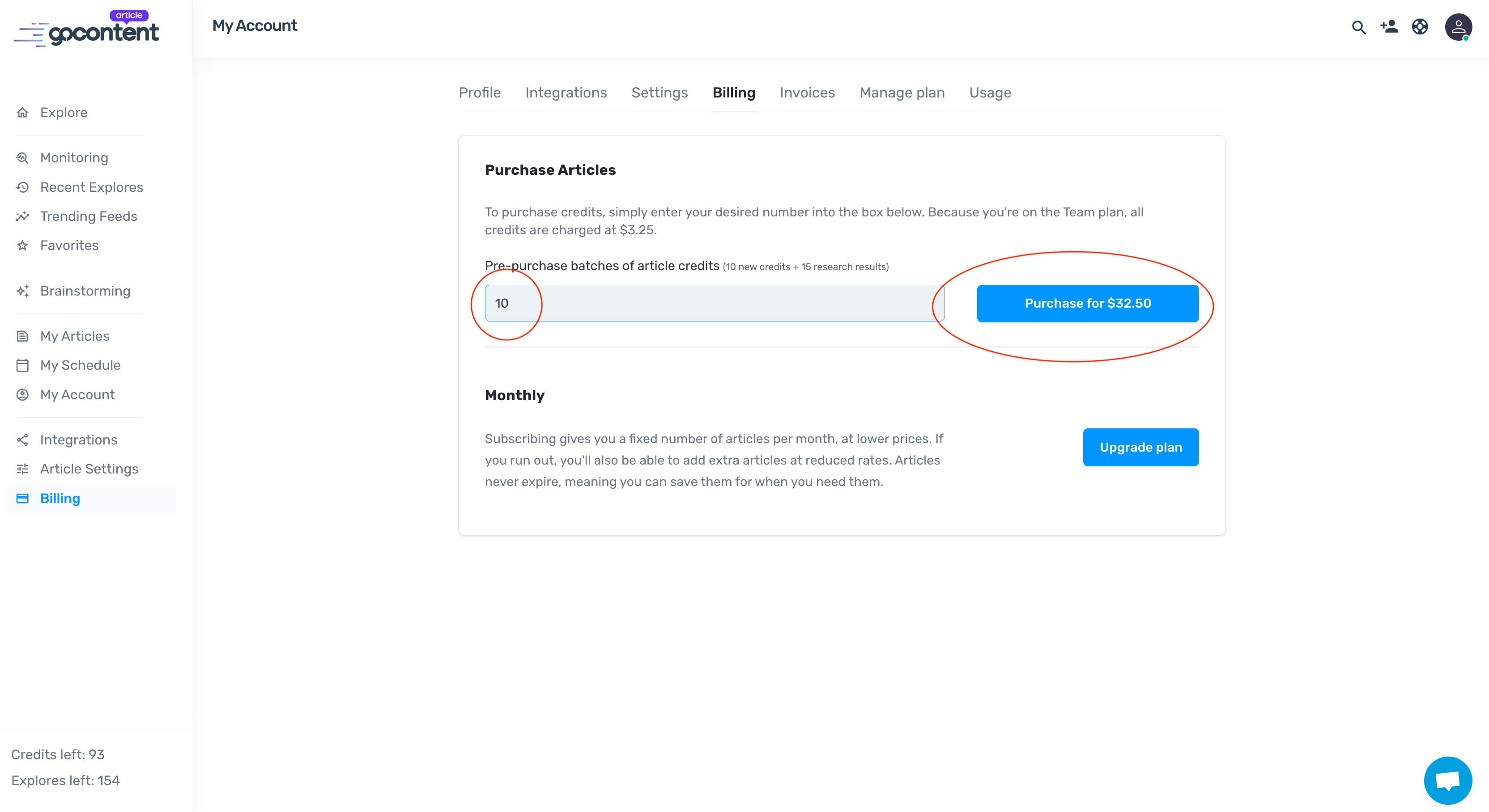 If you have used all the credits from your monthly subscription, you have 2 options to purchase additional credits.