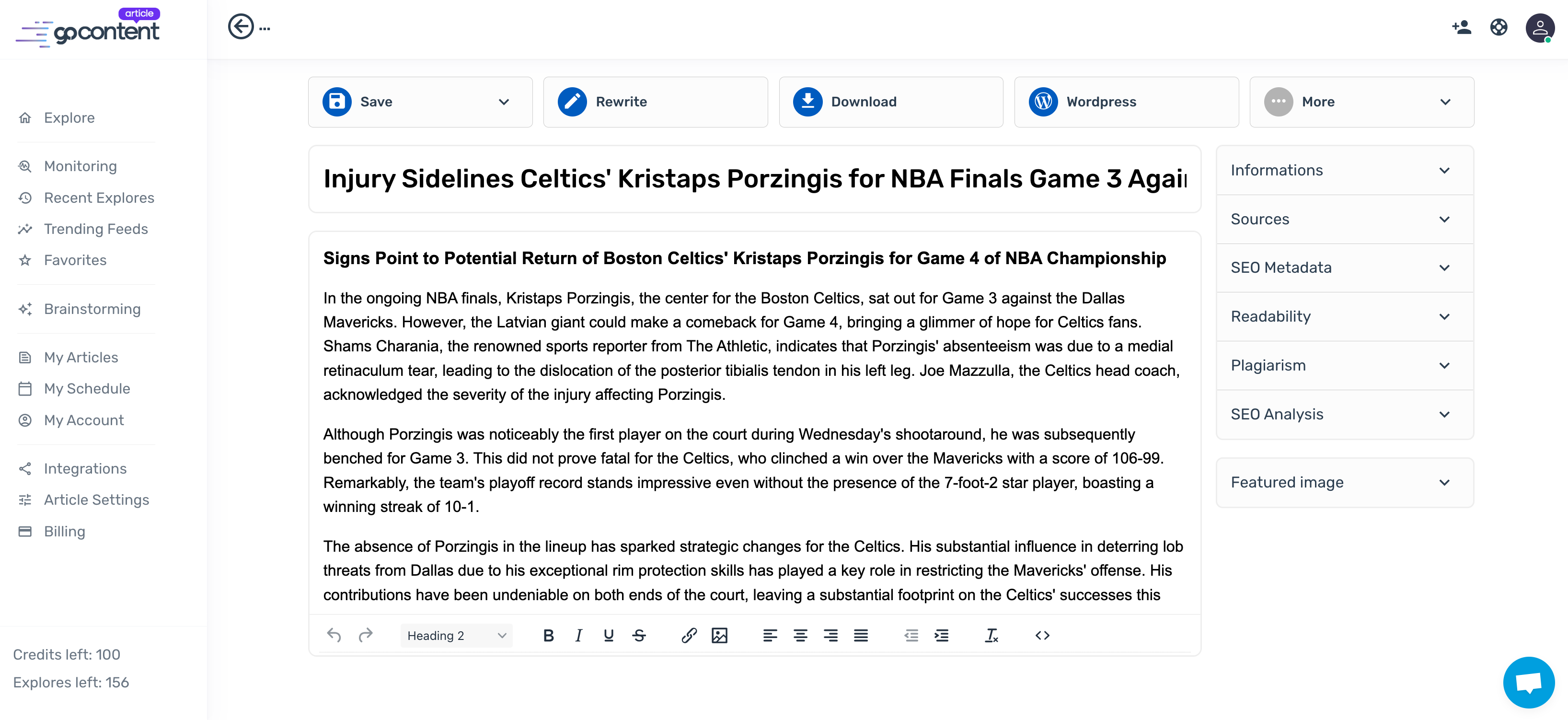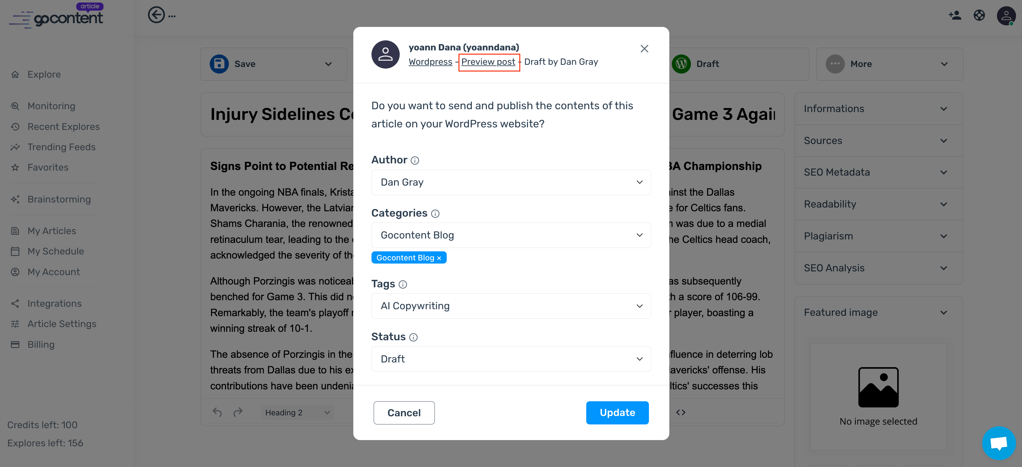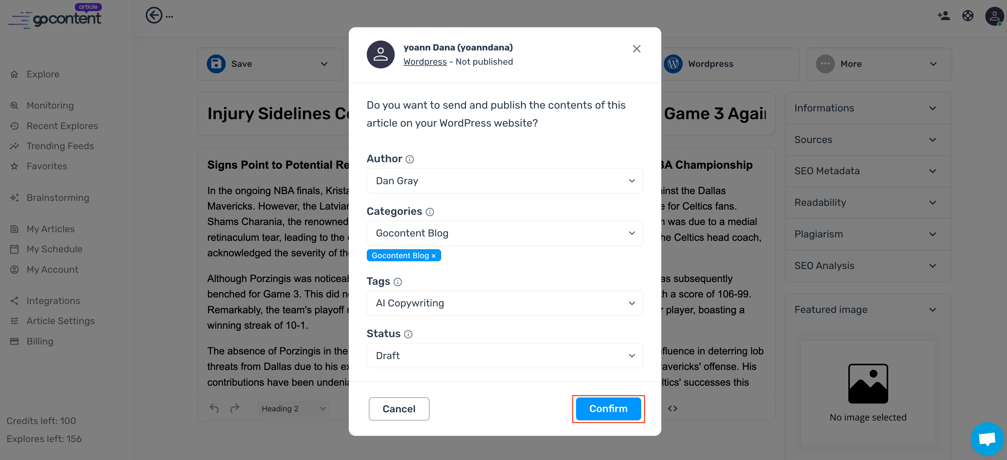 * **Draft:** Your article is published on WordPress as a draft.&#x20;