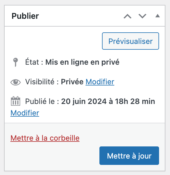 This means you can still modify them before final publication. A draft post is not visible to site visitors, whether they are logged in or not. Draft content is still being written and can be edited by authors and editors. The draft can be revised and modified as many times as necessary before being published. Once the author or editor decides that the content is ready, its status can be changed to "**Published**." It is used when the content is still being created and requires revisions or additions before it is ready to be published.