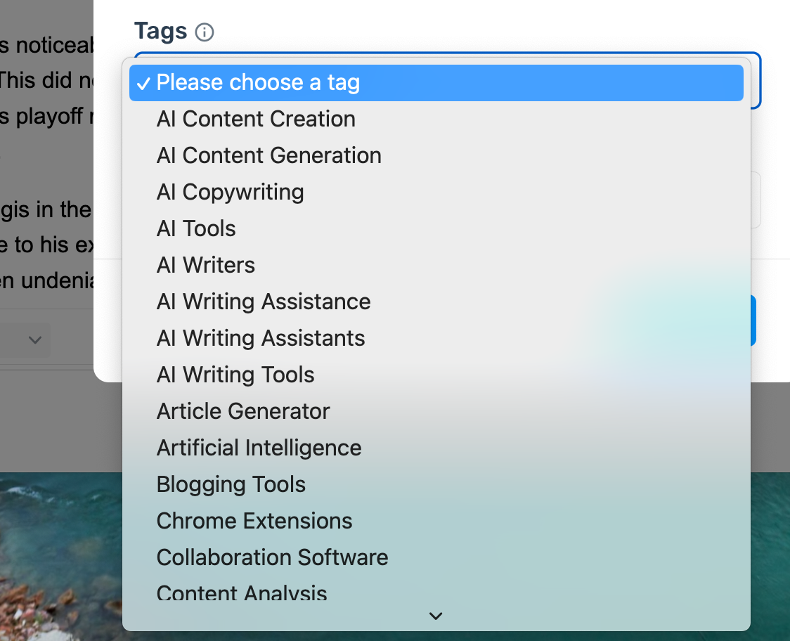 From the list of your registered tags on WordPress, choose the tags you want to add.