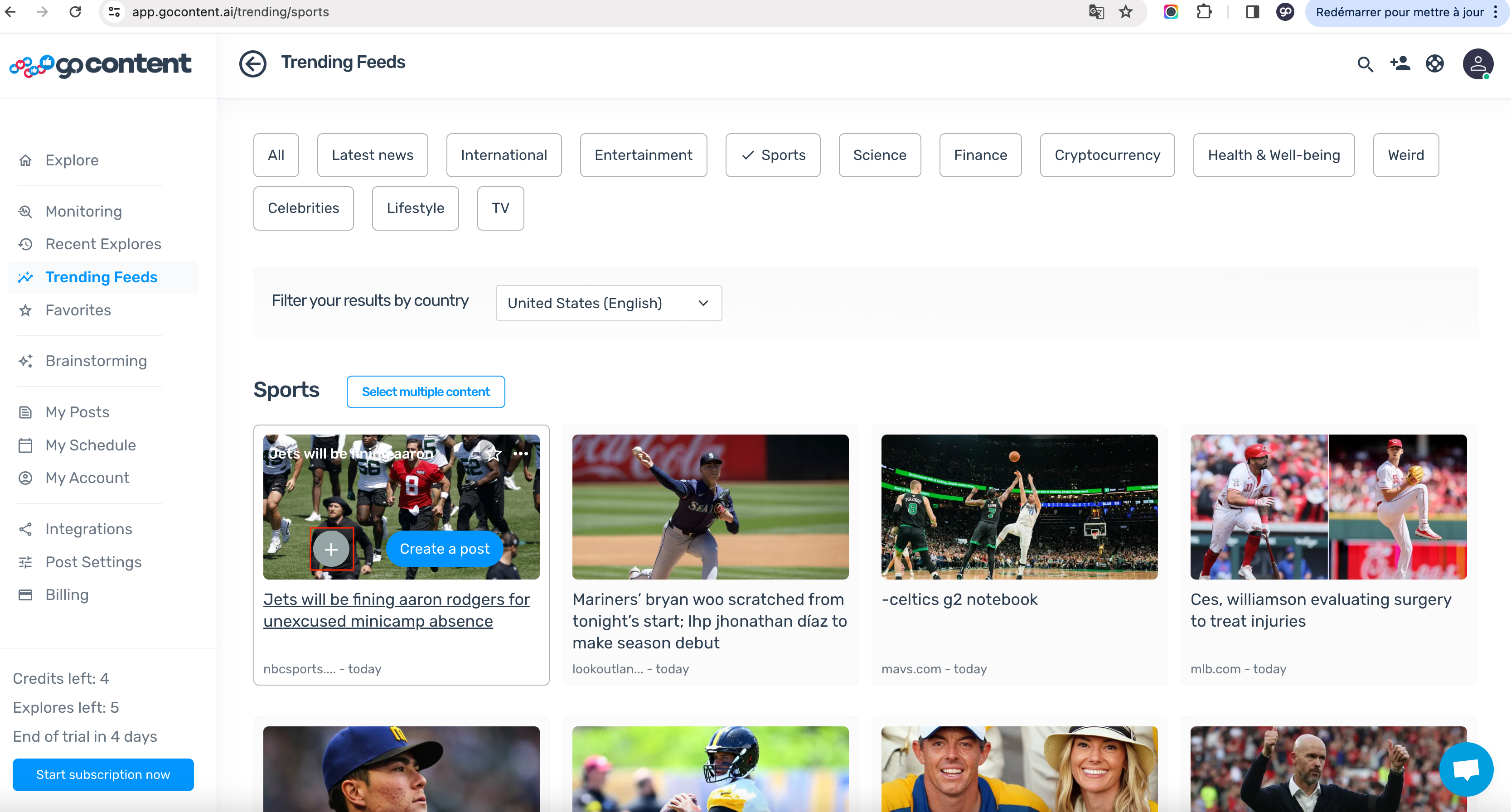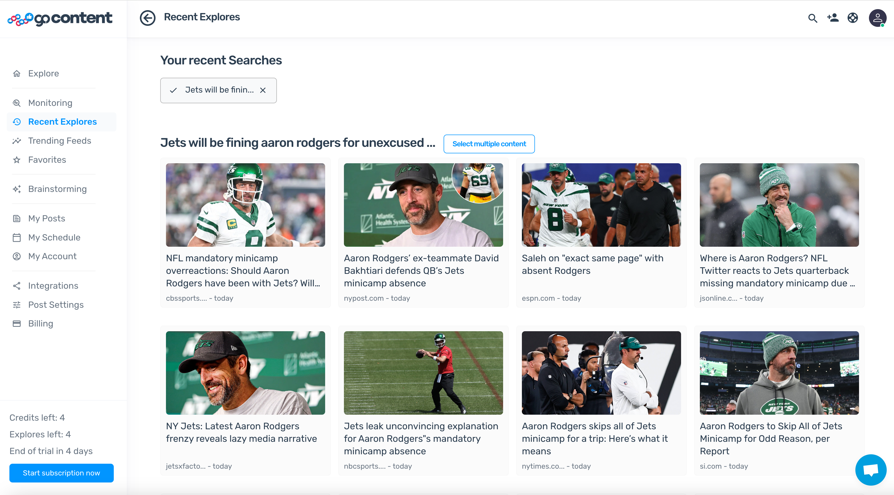 In [**Trending feeds**](https://www.gocontent.ai/trending-feeds), Recent Explores, Custom Feeds... you have a wide variety of post topics.&#x20;